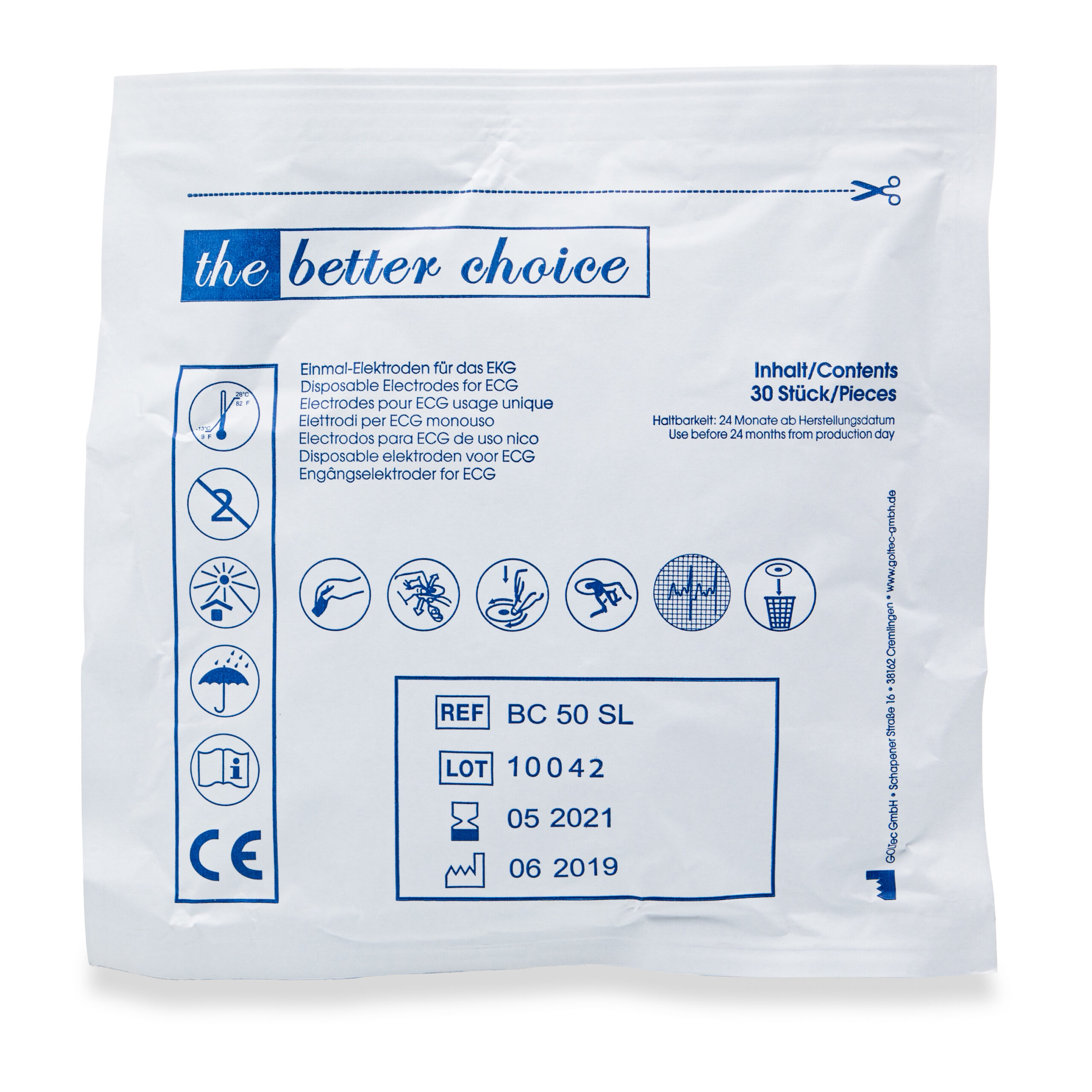 Electrodes autocollantes pour ECG, taille adulte, Ø ± 50 mm, paquet 30 pces